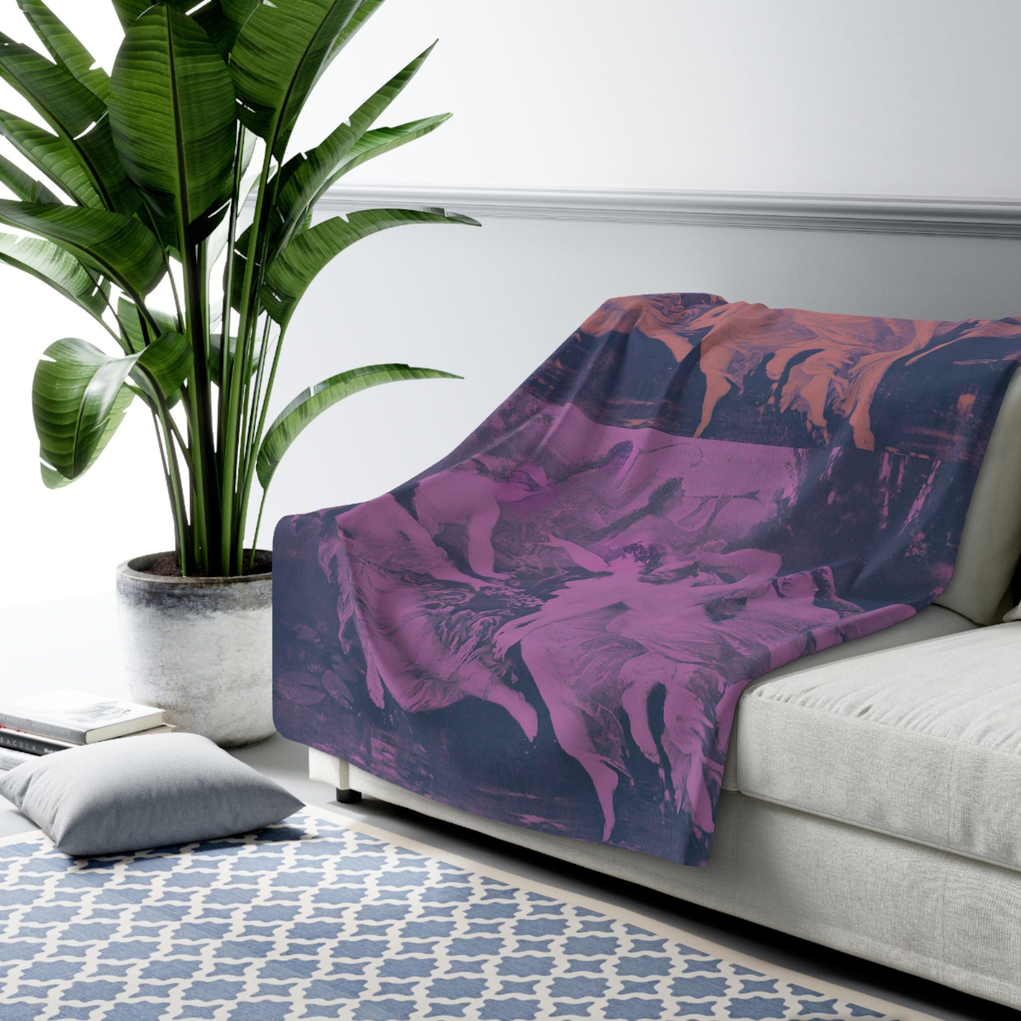 Layering dusky violets and sultry blush hues that make the bodies glow like living embers against night. Printed edge-to-edge on an indulgent sherpa fleece, the image becomes a tactile invitation to step beyond daylight concerns and into sensual dreamspace.