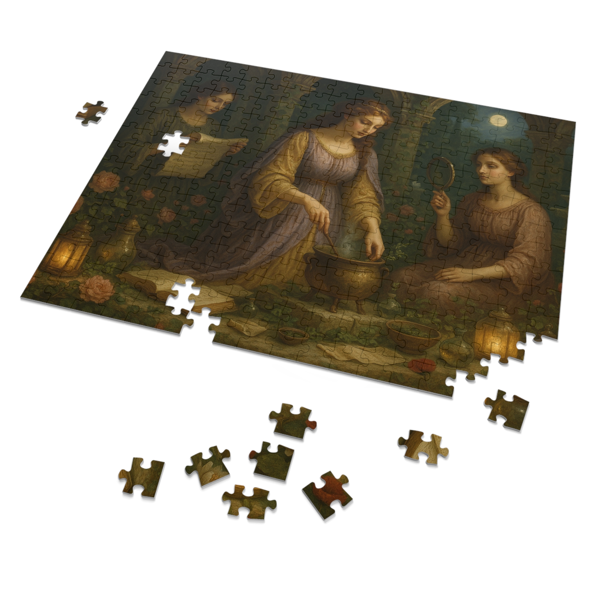 This 252-piece luxury puzzle blends sensual mysticism with lush botanical detail, creating a deeply atmospheric and visually rich experience for romantics, mystics,