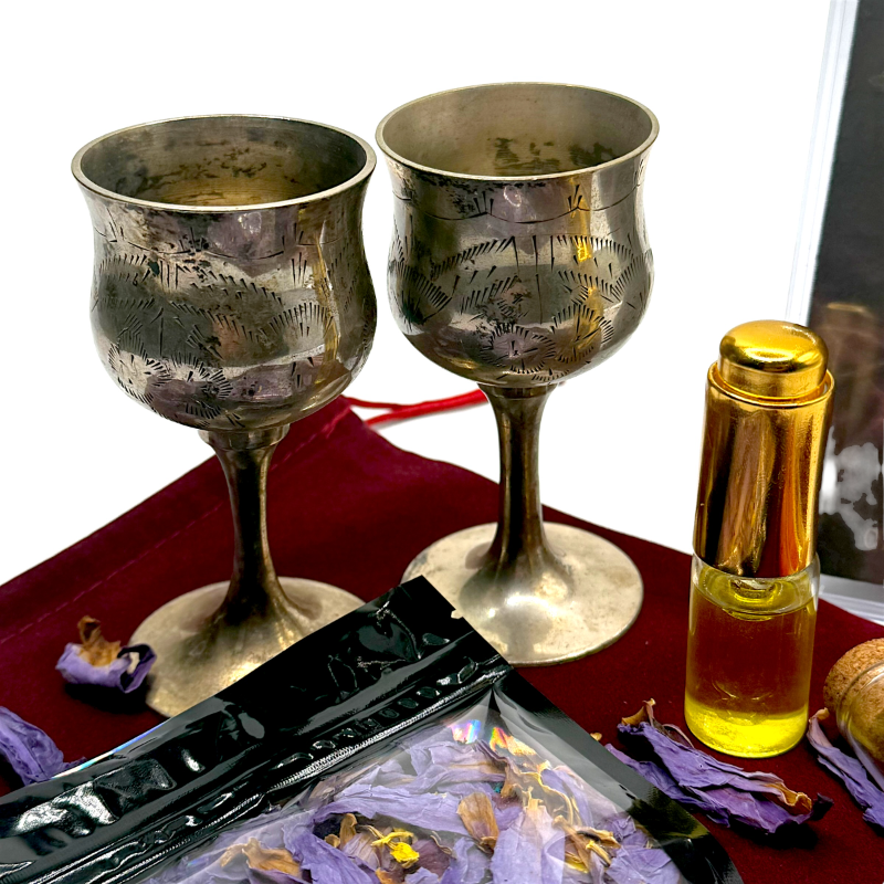 Featuring authentic Blue Lotus flower, antique metal chalices, rose-petal offerings, ritual massage oil, and a ceremonial guide, this kit transforms any evening into an experience of devotion, pleasure, and sacred union.